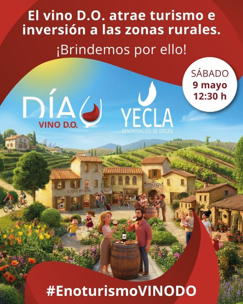 El próximo 9 de mayo de 2026, Yecla celebrará el Día Movimiento Vino D.O. con un evento abierto al público que tendrá lugar a partir de las 12:30 horas en la plaza del Ayuntamiento, o en la plaza de España como alternativa.